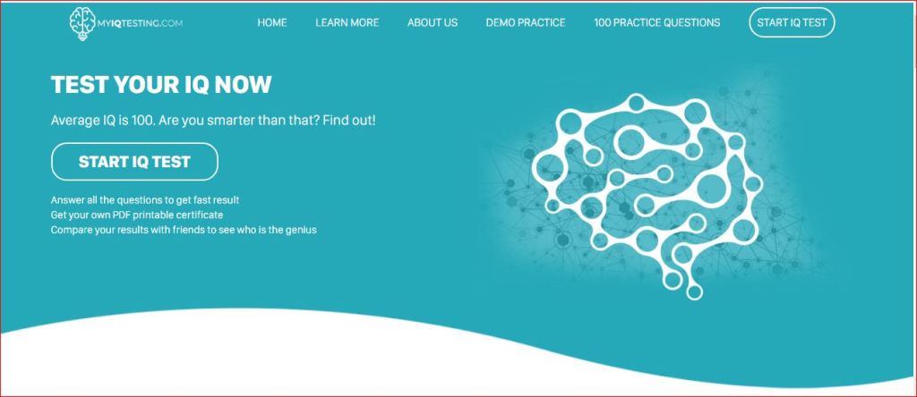 We offer you an effective way to measure your IQ in 25 dynamic questions. You get results immediately as well as how many correct/incorrect answers you have chosen. You will also receive your own personal certificate. Learn more about your brain on MyIQTesting!