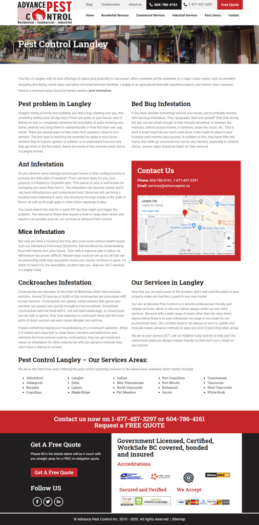 Advance Pest Control provides the best services for pest control in Langley and Aldergorve. Get in touch to get the services! Call Now at 604-786-4161.