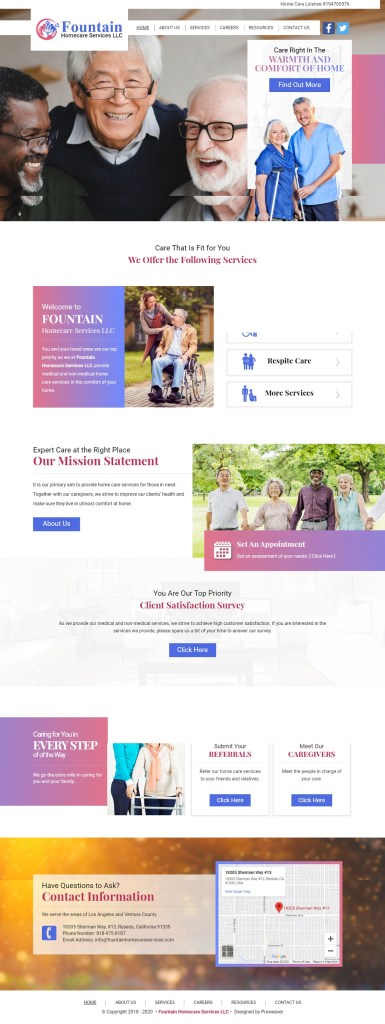 Founded in 2018, Fountain Homecare Services LLC provides both medical and non-medical home care services to the residents of Los Angeles, California, and Ventura County. We cater to people of all ages, from children to the elderly.